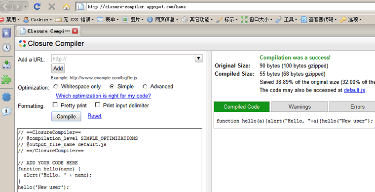 對於大型的JavaScript項目,一般會在產品發布時對項目包含的所有JavaScript文件進行壓縮處理,比如可以利用Google Closure Compiler Service對代碼進行壓縮,新版jQuery已改用這一工具對代碼進行壓縮,這一般會去掉開發時寫的注釋,除去所有空格和換行,甚至可以把原來較長的變量名替換成短且無意義的變量名,這樣做的目的是加快文件的下載速度,同時也減小網站訪問帶來的額外數據流量,另外在代碼保護上也起到了一點點作用,至少壓縮後的代碼即使被還原還是沒那麼容易一下讀懂的。要想代碼能正確通過壓縮,一般要求語句都要以分號正常結束,大括號也要嚴格結束等,具體還要看壓縮工具的要求。所以如果一開始沒有按標准來做,等壓縮出錯後再回去找錯誤那是浪費時間。