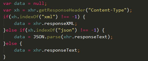 了解了這兩中數據傳輸的方式之後,我們就可以以不同的方式來解析從數據庫中獲取的數據了。需要根據響應報文中的響應頭中的Content-type屬性來確定采用哪種方式,實現如下: