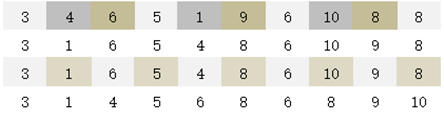 我們原始數組為[3, 4, 6, 5, 1, 9, 6, 10, 8, 8]