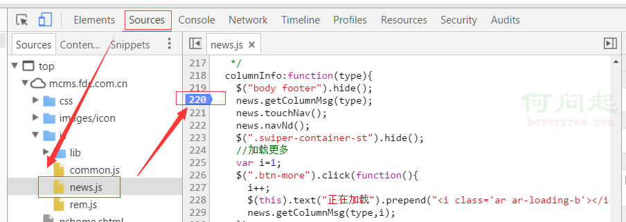 斷點調試其實並不是多麼復雜的一件事,簡單的理解無外呼就是打開浏覽器,打開sources找到js文件,在行號上點一下罷了。操作起來似乎很簡單,其實很多人糾結的是,是在哪裡打斷點?(我們先看一個斷點截圖,以chrome浏覽器的斷點為例)