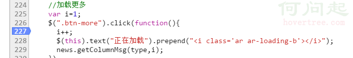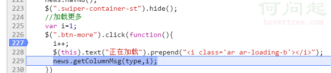 大家都知道,加載更多就是一個下一頁的功能,而其中最核心的一個就是傳給後台的頁碼數值,每當我點擊加載更多按鈕一次,頁碼的數值就要加1,所以如果下一頁的數據沒出來,是不是有可能是因為頁碼數值也就是[i變量](下面統一稱呼i)有問題?那麼如何排查頁碼是否存在問題呢?大家自己先思考思考。