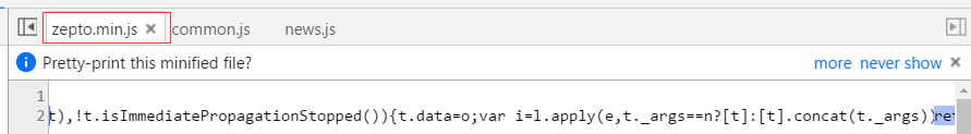 這些都是zepto庫文件的內容,沒啥好看的,裡面運行很復雜,我們不可能一直使用“逐語句執行”按鈕,這樣你會發現你按了大半天還在庫文件裡面繞。。。這時候咋辦?那就該“逐過程執行”按鈕上場了。