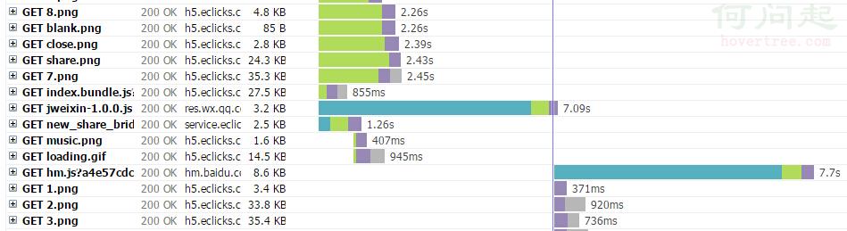 在Waterfall中有資源加載記錄,加了data-src屬性的圖片會在JS腳本之後再載入,這樣的話就不會影響Loading效果顯示了。