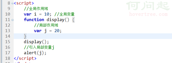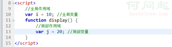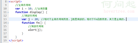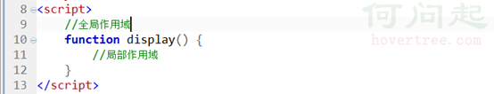 在Javascript中沒有塊級作用域,對作用域的劃分都是通過function函數來實現的。在函數外部的區域就是全局作用域,在函數內部的區域就是局部作用域。