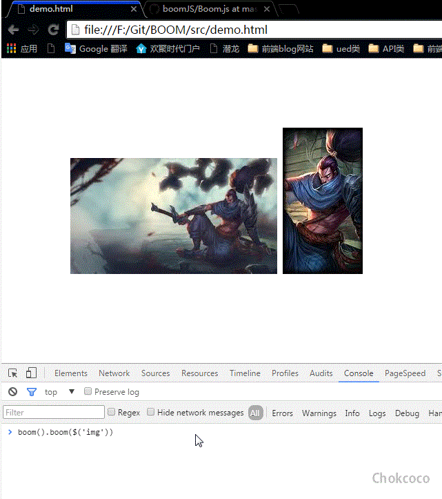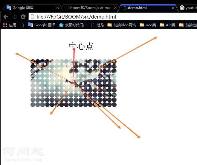 在濃烈的好奇心驅使下,最終利用 Javascript 和 CSS3 完成了模仿上面的效果,通過調用方法,可以將頁面上的圖片一鍵爆炸,我給它起了個 boomJS 的名字,貼兩張效果圖: