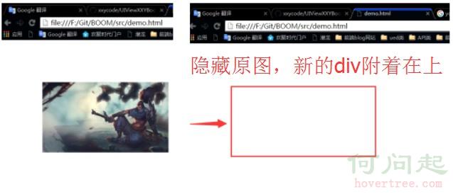 原本的圖是 <img> 標簽的圖,一張整圖,最終的效果當然不是在原圖上 boom ,看上去連貫的動畫本質上只是一個障眼法,利用 Javascript 做了一些巧妙的變換,所以第一步所做的就是取到原圖的高寬及相對浏覽器視窗的定位,再創建一個新的容器附著在原圖之上,然後隱藏原圖。