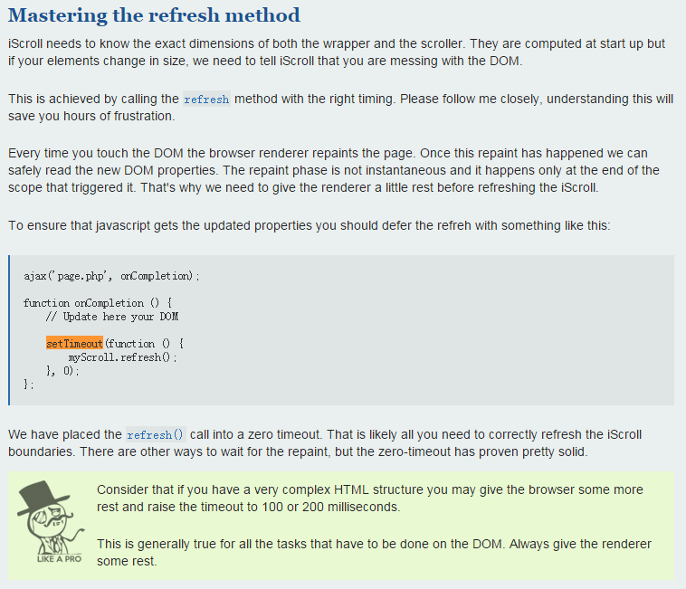 其實上面我給出的iScroll文檔說明中也說明過這個問題: