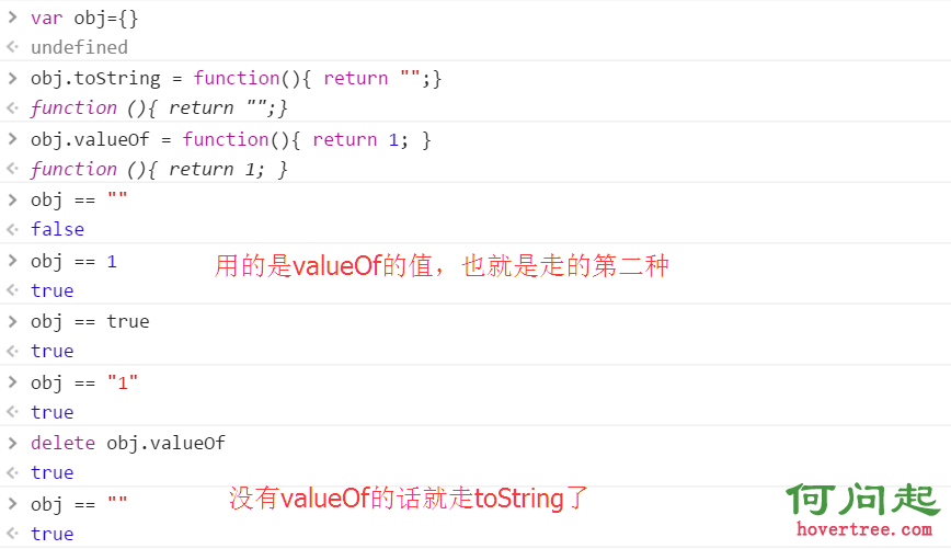 對與運算符"=="來說,如果是對象和原始值比較,一般是走第二條路,也就是先走valueOf,再走toString,如果走toString且要比較的原始值是字符串則不轉數字,直接用字符串比較。