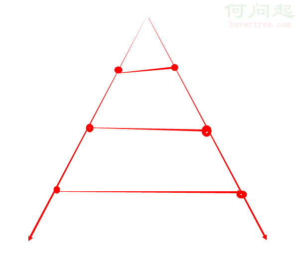 我的計算公式很簡單,就是照著下面這幾個3角,頂角作為起始點,2個底角和頂角作為 "三次貝塞爾曲線" 的3個參數,這樣花瓣就一層一層延伸下來: