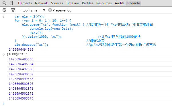 使用隊列,可以直觀清晰,方便地將異步操作表示出來。就類似於 Thread.Sleep(1000) 那樣明了。