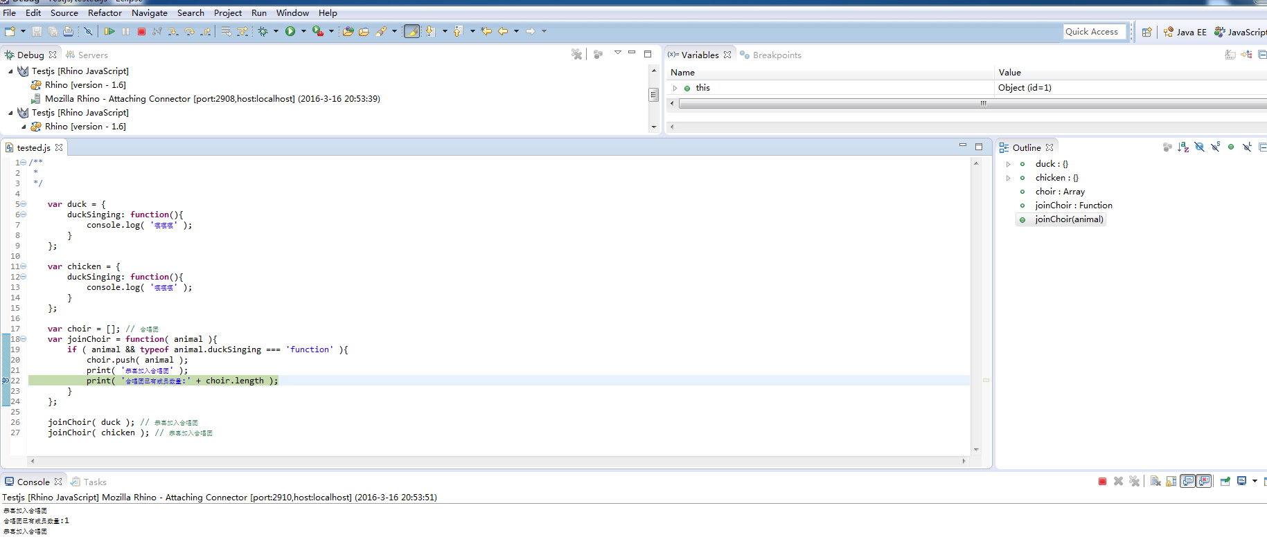 筆者第三個推薦的工具是eclipse javascript debugging 插件,借助Rhino對javascript的完整實現,我們完全可以滿工業化的調試我們的javascript代碼,打斷點,打不執行,代碼跳轉,這就是工作效率。