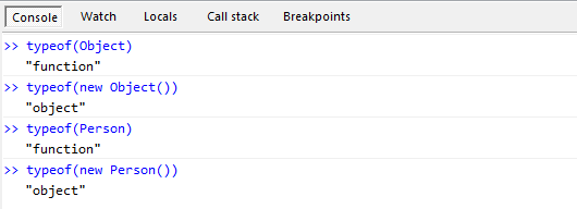 在上面的代碼中, 如果我們把Object當作一個函數名那麼 new Object() 和 new Person() 性質就是一樣的了。通過 new 操作符得到一個 function 實例, 這裡面的function就已經是類的概念了。所以這裡的Object其實是一個function。這樣我們就可以解釋為什麼typeof(Object)是function了。