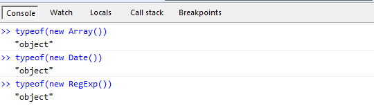 typeof (new Date()); // object typeof (new Array()); // object typeof (new RegExp()); // object
