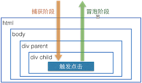 w3c規范中定義了三個事件階段,依次是捕獲階段,目標階段,冒泡階段,而w3c指定的dom2級規定中,使用的是addEventListener來監聽事件的.所以我們就以addEventListener來講解,首先事假冒泡就像你從往水中扔一塊石子,水中的氣泡從下邊往上冒一樣,意思為觸發事件後從子元素王父元素方向觸發,而捕獲機制則正好相反,捕獲機制是從父元素往子元素方向進行事件觸發,而addEventListener函數中的第三位參數正是來決定是使用捕獲機制還是冒泡機制的,當useCapture為true是為捕獲機制,當useCapture為false時是冒泡機制,我們看一下例子: