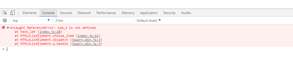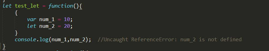 注意:①、let不像var一樣會發生“變量提升”的現象,所以,使用之前,必須先聲明,不然就會報錯。