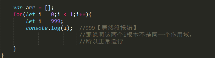 注意:①、在作用域方面,它其實和let作用域相同:只在聲明所在的塊級作用域內有效;