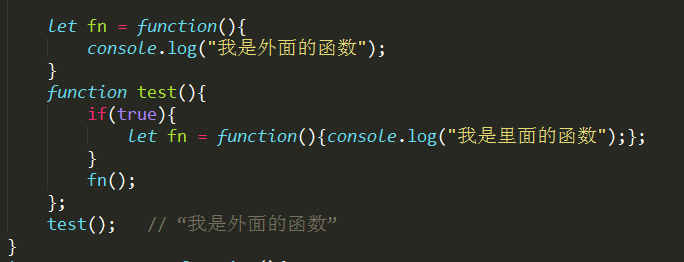 好了,現在再來講一講上文提及到的一個東東:“塊級作用域”。在es5中只有“全局作用域”和“函數作用域”。這使得我在剛開始學的時候一臉蒙蔽,其他語言都有塊級作用域(比如C語言),但js就沒有。幸好在es6中加入了“塊級作用域”的概念,let實際上為javascript新增了塊級作用域,有了塊級作用域,就可以避免變量洩露成全局變量,代碼快之間不會受到影響。另外,es6裡還規定了:函數本身的作用域在其塊級作用域內。注意!注意!注意!重要的事說三遍:(如果是在嚴格模式下,函數只能在頂級作用域和函數內部聲明,其他情況下【比如:if語句、循環語句下】就會報錯) :