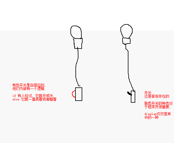幫開關裝上感應元件, 一旦有動靜, 開關便自動switch 建立function showhide() { 使用if+else語句, 改變開關的接線:改變屬性賦值}