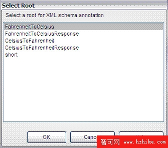 輸入 Web 服務,單擊 Validate wsdl 按鈕驗證 Web 服務。驗證 WSDL 之後可以選擇根節點創建帶標注的 XML Schema,如圖 3 所示: