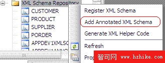 在 Server Explorer 中右鍵單擊 XML Schema Repository 並選擇 Add Annotated XML Schema,如圖 1 所示: