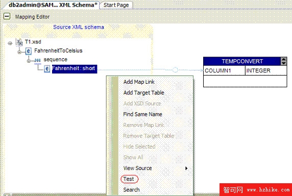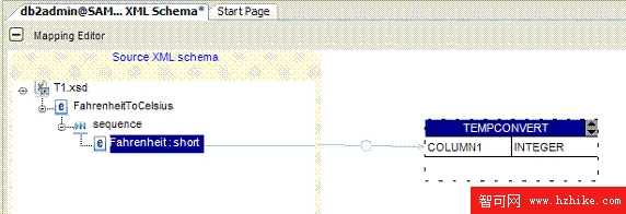 在 Mapping Editor 中選擇一個表將 Source XML Schema 中的列映射到目標表。圖 5 顯示了映射的列: