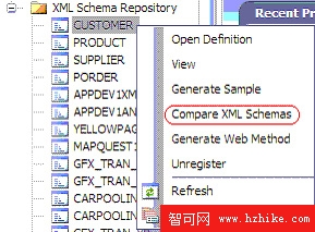 跟蹤 XML 模式的變化或更新不但困難,而且頗費時間。為此,V9.5 增加了比較 XML Schemas 的功能。用戶可以選擇一個 XML 模式,然後在上下文菜單中選擇 Compare XML Schemas。該選項比較模式,並在操作過程中提示用戶兩者的差別。