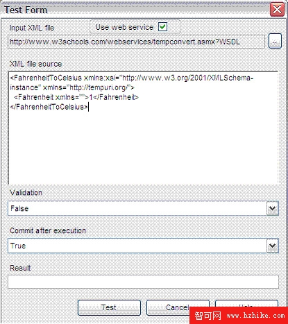 可以定義源 XML 文件,或者在 Test Form 中使用編輯器定義 XML。可定義 Web 服務檢驗創建的標注 XML 模式。