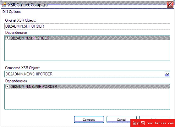要比較的模式可在 XSR Object Compare 對話框中選擇,如圖 14 所示。用戶可以定義原 XSR 對象並選擇其依賴關系、要比較的 XSR 及其依賴關系。選擇要比較的 XSR 對象後單擊 Compare。