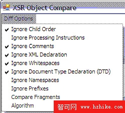 在 XML Schema Repository Object Compare 對話框中,Diff 按鈕可以讓用戶修改比較選項。比方說,如果用戶選擇 “Ignore comments”,則兩個 XML 模式文檔的注釋部分不進行比較。