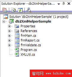 生成的代碼添加到新建項目 db2XmlHelperSample 中。生成的代碼文件 XMLUtil.cs 包括 XSL Transformation 和驗證代碼。用戶可以此為基礎創建自己的應用程序。執行的時候,這段代碼將顯示一個對話框,顯示 XML 轉換和驗證的例子。