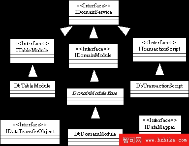 為每種模式實現的業務對象抽象獨立接口,並編寫對應的關系數據庫實現類;Domain Module需要調度數據映射和DTO進行關系數據與業務實體的映射;增加抽象基類DomainModuleBase,通過調用IDataMapper和IDataTransferObject完成數據提取和映射工作。