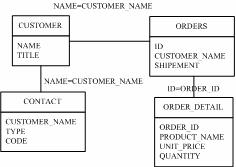 為了比較三種模式實現特點的不同,測試中設計了2個具有Master-Detail特征的業務實體:Customer和Order,兩者之間也存在1:N的關系,對應的關系數據庫和XML數據實現如下: