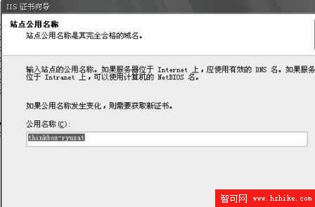 注意:公共名稱必須填寫為訪問站點的域名,如:要想用下面的地址訪問Web Service,https://192.168.1.179/..,則此處必須填寫"192.168.1.179”,否則將提示使用了不安全的證書,導致站點無法訪問。將此步驟設置好以後,一路next即可。
