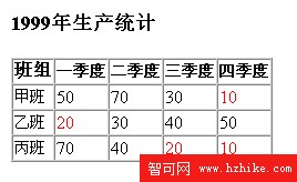 <!--此處測試產量,如小於等於20則添加一STYLE屬性color,其值為red(紅色)-->