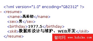 在這裡,我們無法從標記TH、TD得知其內容表示什麼,如果用XML,相應的文檔(文件名:個人簡歷.XML)就可寫成如下形式: