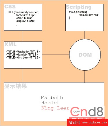 4.DOM則為腳本和對象的交流提供一個公共平台,並將結果顯示在浏覽器窗口。