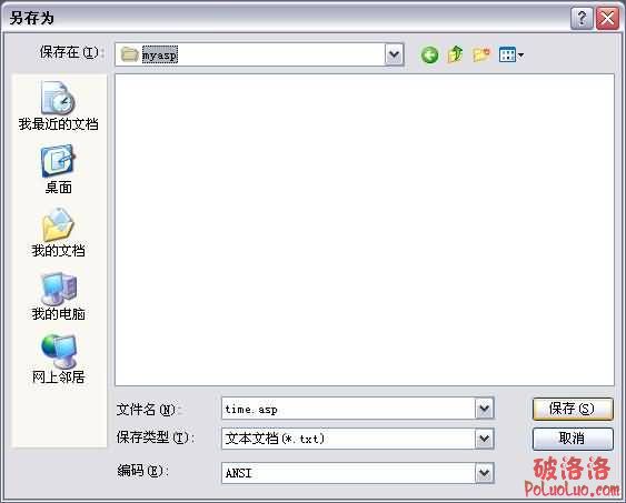 9,接著將文件保存到E:\myasp\文件夾裡面,並且命名為time.asp