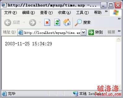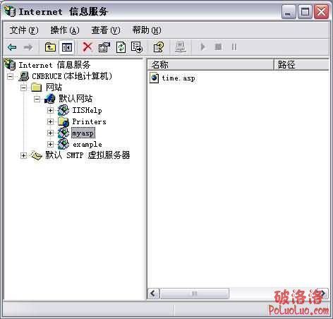 大體上就是讓我剛才的myasp文件夾用一個代號來標記,比如就標記為myasp,那我調試的時候只要輸入:http://localhost/ myasp/time.asp 就可以調試了。