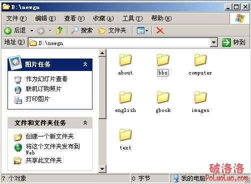 1,打開電腦,在D盤下建立一文件夾newgn(這個夾子就是你的站點存放點了),並且在裡面建幾個子文件夾(就好似你網站的子目錄)