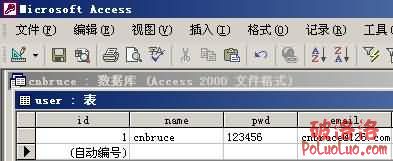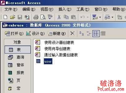 至此對數據庫、表、字段的建立保存工作完畢。下面就開始動用DW操縱mdb文件了。