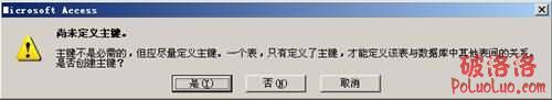 此時一點需要提到:剛剛強調的設置字段id相關是必須的,否則在保存之後還會出現如下對話框,其效果還是設置類型是自動編號的關鍵字段。