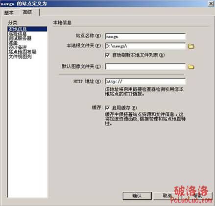 6,選擇“編輯站點”,在彈出的屬性框中選“高級”標簽,從“分類”中先選“本地信息”,右窗口中設置站點名稱(隨便輸入,但自己要清楚其代表的意思,推薦和你站點的根文件名同),本地根文件夾(這時候就指向到我們在步驟1中建的文件夾了)。
