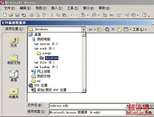 接著打開Microsoft Access DBMS,"文件"---“新建...”數據庫,在彈出的對話框中選擇存放路徑並命名。