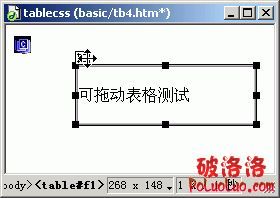 在Dreamweaver中,給表格增加css定位,表格就變得象“層”一樣可拖動。