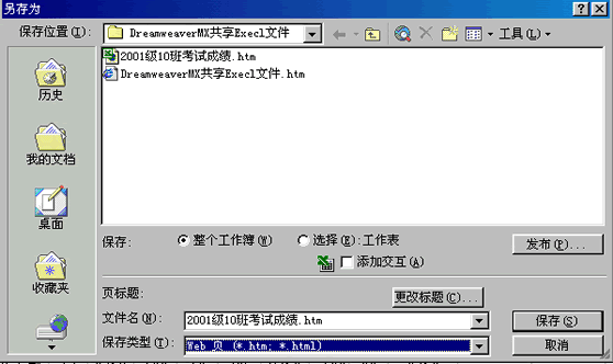 1、在Execl XP中單擊“文件/另存為”,打開“另存為”對話框,如圖3所示,在“保存類型”中選擇“Web頁(*.htm;*.html)”。