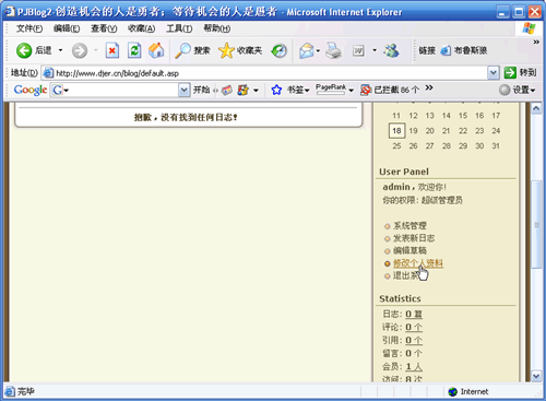 登錄PJBLOG的第一件事就是“修改個人資料”將默認密碼修改。
