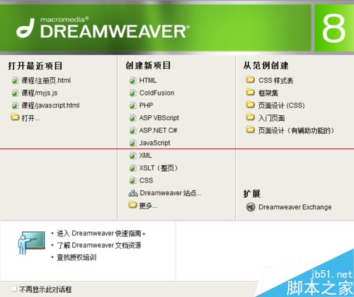 1、首先我們先打開我們的dreamwawer編輯器,如下圖,我們這裡用的是dreamwawer8.0版本,不過大致設置都是一樣的,對於版本不要太在意!打開界面如圖!