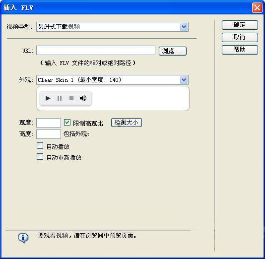 自動播放:選擇此項,加載頁面時會自動播放FLV文件。