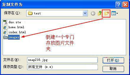這時我們就可以將圖片復制的網站站點目錄下,一般情況下,圖片文件專門會有一個存放文件夾,我們可以點擊新建按鈕,創建一個圖片文件夾。