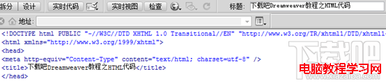6.在<body>標簽後面插入光標,並在標簽後面輸入“下載吧Dreamweaver教程之HTML代碼”。